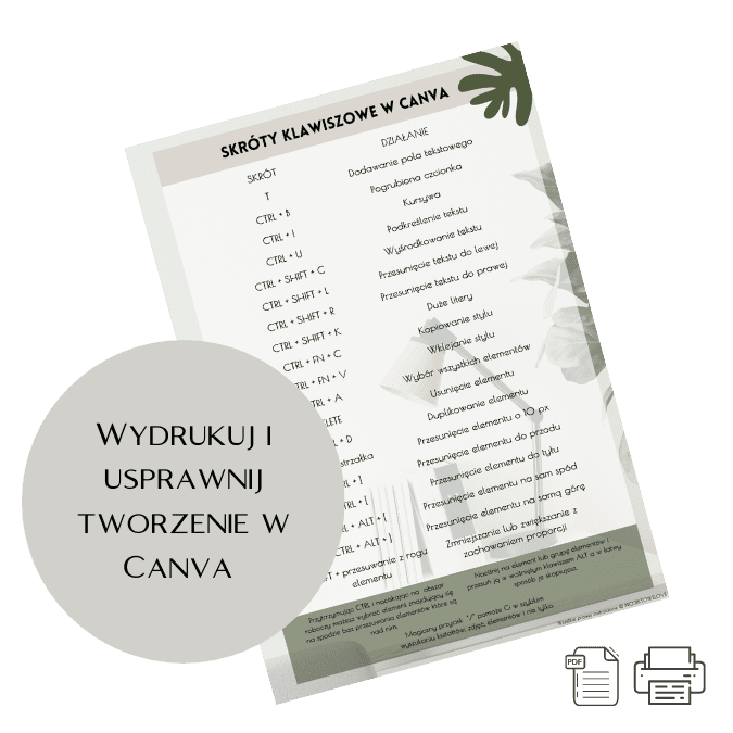 Zapisz się do newslettera, a jako prezent otrzymasz link do pobrania kartę ze skrótami do Canvy do druku w formacie A4.